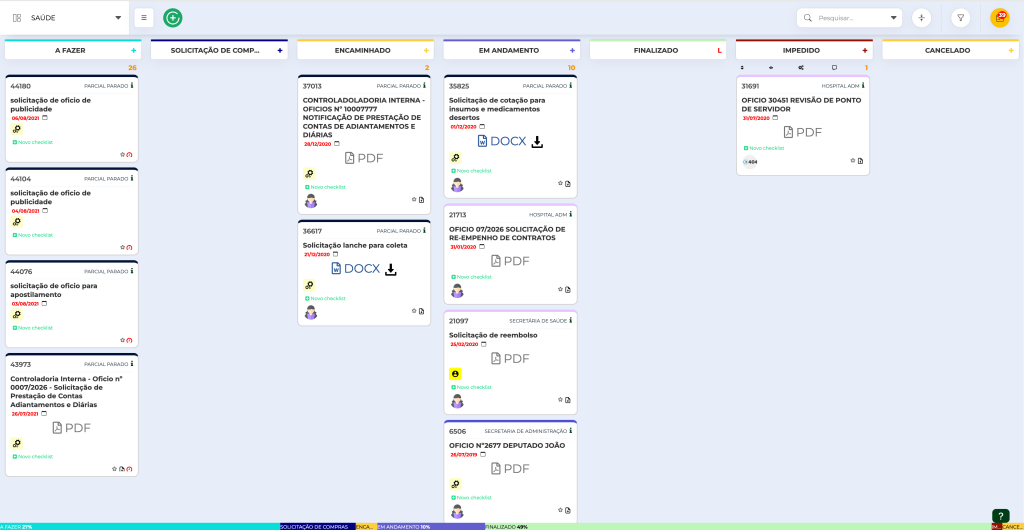 Imagine processos e fluxos padronizados, com times de diferentes áreas utilizando a gestão puxada, deixando todo o histórico transparente, do início até a entrega dos serviços.